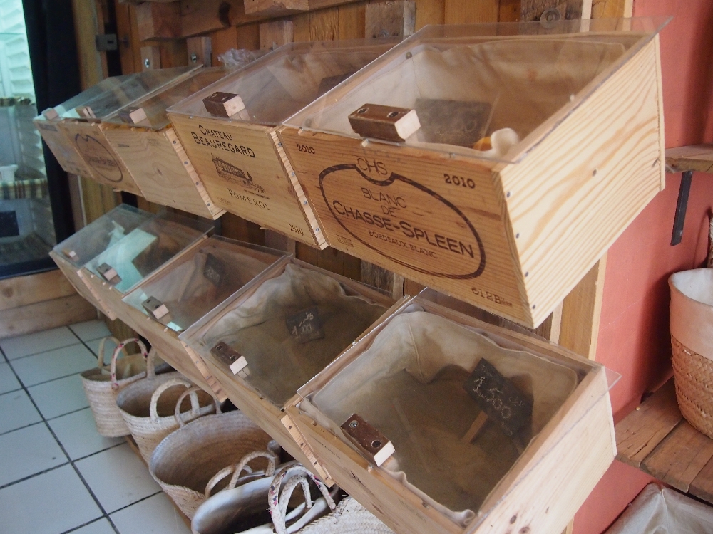 おいしいチーズ、オリーブオイル漬け各種、スパイス各種、ジャム、花水、乾燥豆やコーンなど、からすみ、保存食各種、卵、オリーブオイル、パスタ類