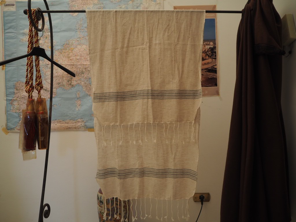 [蚤の市]マハディアの麻スカーフ 15TND 20/09/2016 最終更新日時 : 22/09/2016 travelsun マハディアの手織り麻スカーフです。織ってるそばから買いました。未使用です。 大きさ:たて約160cm×よこ約65cm 価格:15TND ユニセックス(お店の人談)