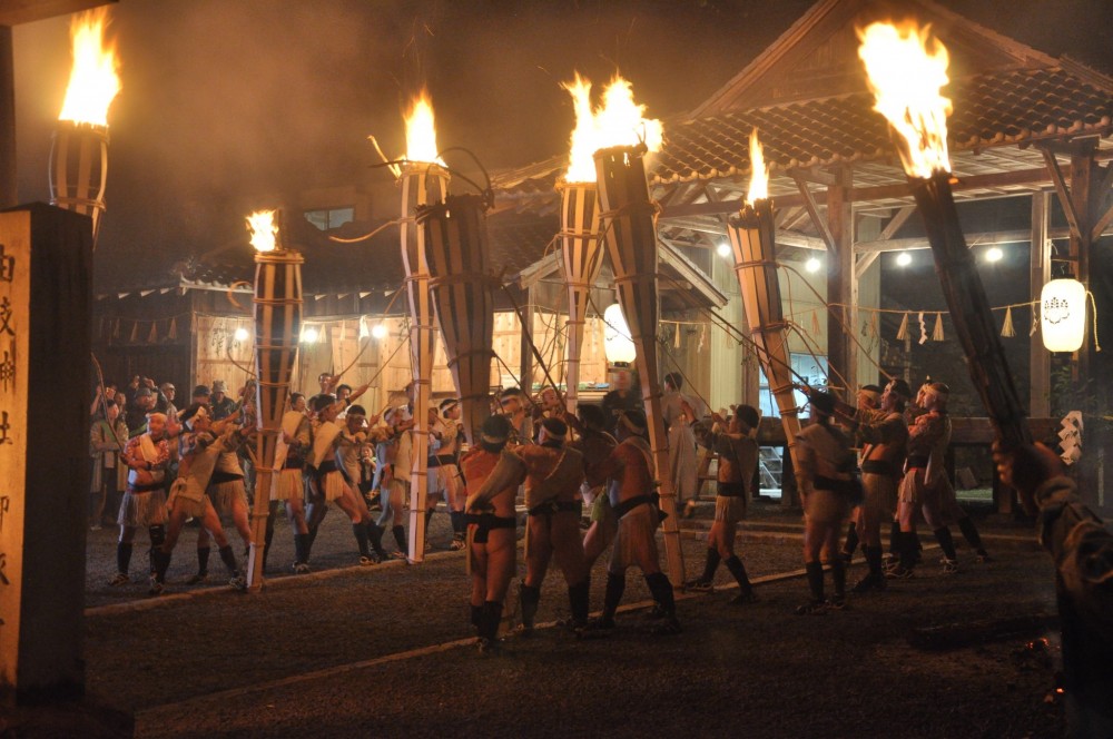 Le festival de feu est l’un des festivals les plus étonnants qui se caractérise par des géantes gigantesques e trois mètres de haut qui sont placés ici et là avec presque de 250 torches illuminent la ville ! ces festivités ont eu lieu au sanctuaire Yuki , qui se caractérise par une architecture particulière représentant la période “Azuchi Momoyama” 1573 – 1598 , évidemment entouré par des beaux paysages, il est le lieu idéal pour admirer les cerisiers en Avril !