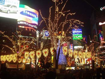Cette célébration est considérée comme la plus attendue de chaque année; elle est importée sans son aspect religieux car les japonais ne connaissent pas la naissance de Jésus mais principalement le Père Noel , dont la décoration répandue partout joue un role très important;des illuminations qui font embellir la ville ! c’est vraiment captivant !