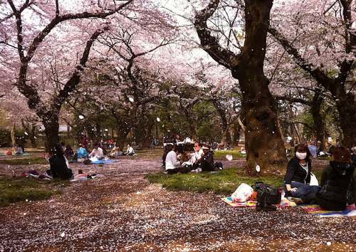 Au Parc Ueno, les japonais se rassemblent sous les arbres de cerisiers ( Sakura), discutent , chaque matin, ils arrivent tot pour réserver leurs places puisque de nombreux visiteurs viennent en profiter! de meme, il y’a un autre endroit qui attire l’attention de visiteurs c’est le Yoshino situé dans la préfecture de Nara il est aussi réputé pour l’apparition de ces fleurs en cerisiers et le pratique de Hanami ! un paysage très captivant vous attend puisque ily’a plus de 3000 cerisiers qui couvrent la montagne ! Pour les amoureux de la nature , la saison de cerisiers ou le “Hanami” est la miroir de printemps et aussi la période idéale pour en contempler et de profiter des vues panoramiques ! par contre en été, il fait très chaud et très humide, cette humidité est très élevée !