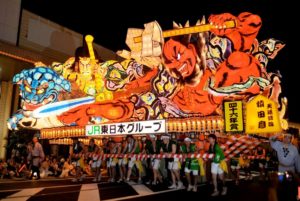 lliers de danseurs sautillent en criant “rassera“, sous les yeux de centaines de milliers de touristes, lorsque ses chars brillent de mille lampions avant qu’on ne lance un feu d’artifice (à ne pas confondre avec le Neputa Matsuri, pratiqué avec des éventails géants dans la ville voisine de Hirosaki du 1er au 7 août).