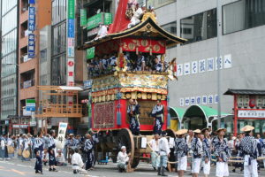 *Gion Matsuri : est une fête qui se déroule à Kyoto, au Japon .Cette fête fut instaurée en 869 comme un rite pour lutter contre la peste et autres catastrophes naturelles qui ravageaient la région.Se déroulant dans le quartier de Gion, elle est l’un des trois grands festivals du Japon avec Tenjin Matsuri et Kanda Matsuri .